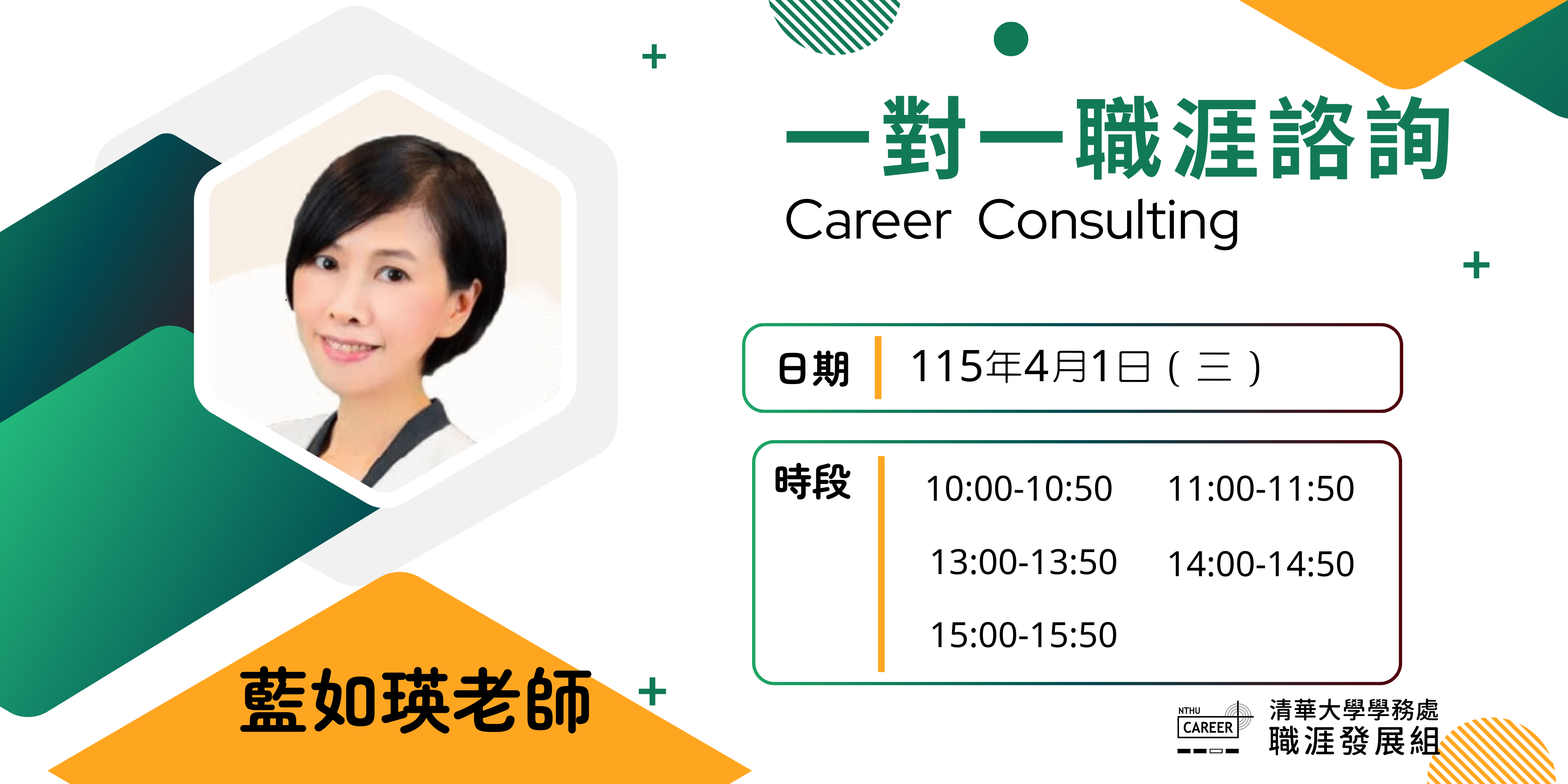 報名訊息如有疑問請洽職涯發展組黎小姐 分機62430 Email:minying@mx.nthu.edu.tw