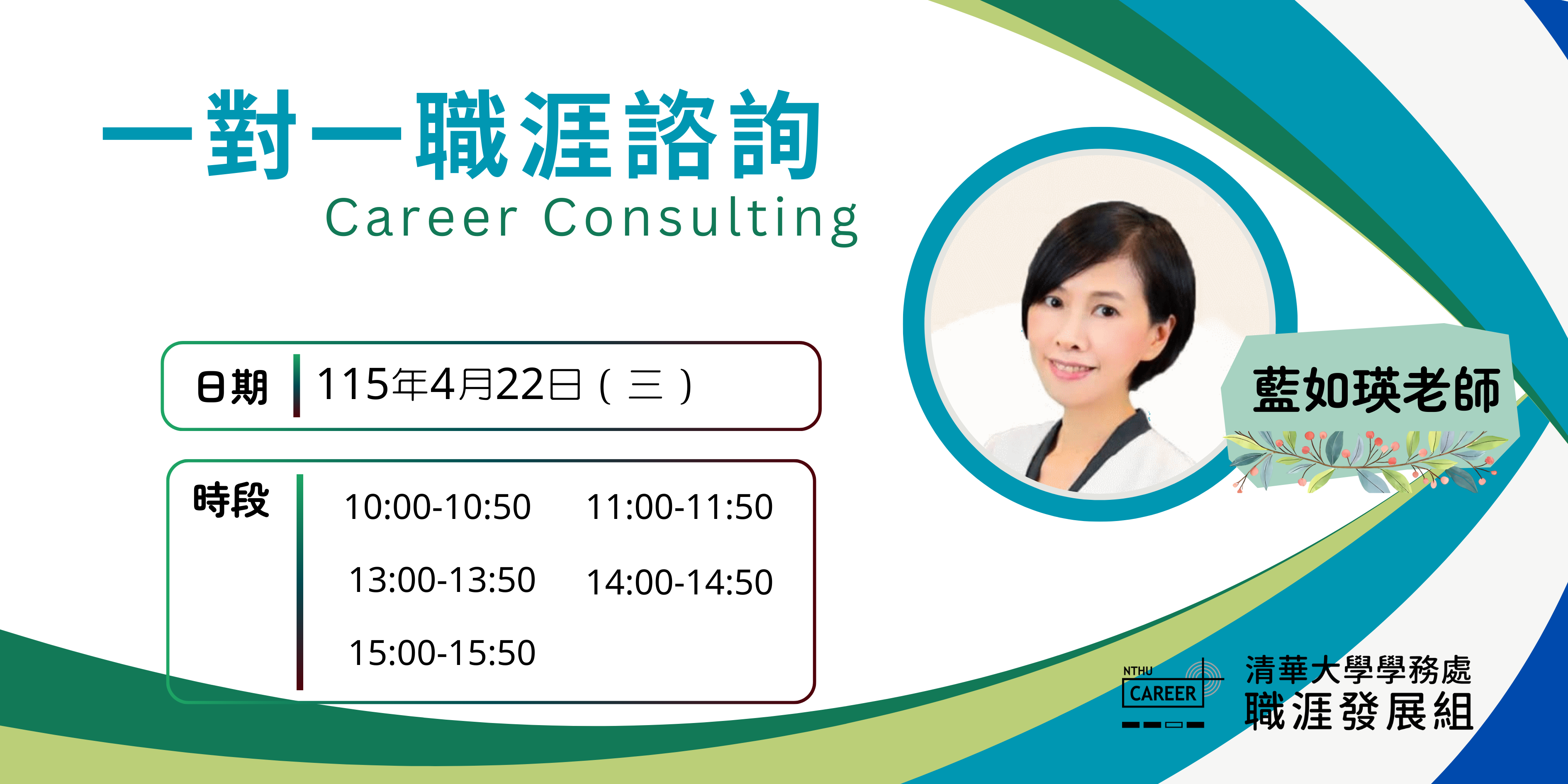 報名訊息如有疑問請洽職涯發展組黎小姐 分機62430 Email:minying@mx.nthu.edu.tw