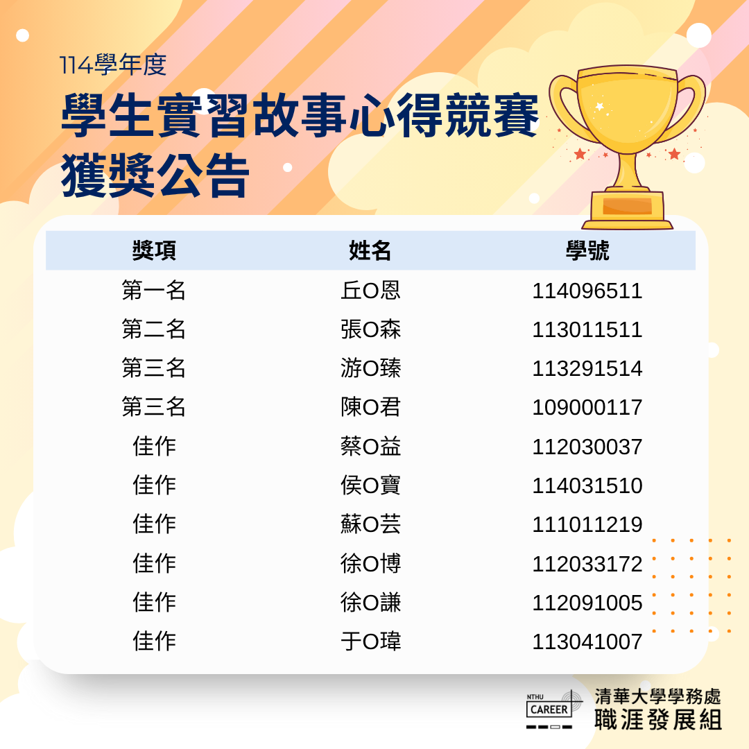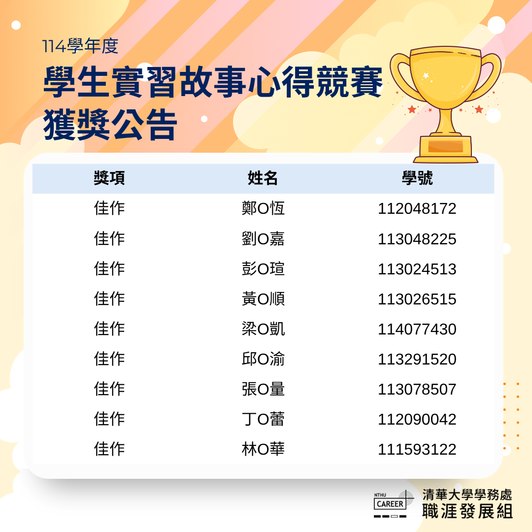 3.獲獎通知亦同步寄信至同學信箱,請同學務必收信。