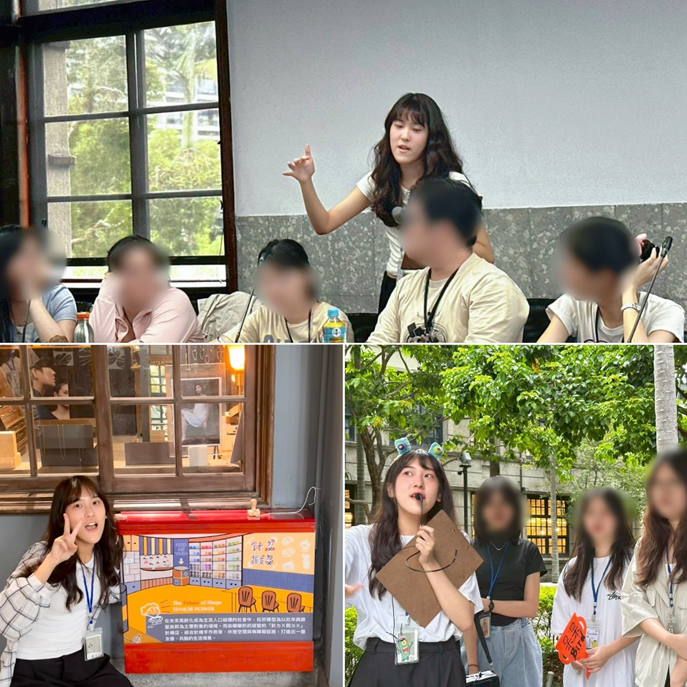在松菸裡,我嘗試了許多嶄新的挑戰:從策劃導覽、優化內容,到接待友館與主持工作坊;親手設計了一套專屬卡牌,為導覽增添趣味。在與志工們的交流中,將他們的需求彙整,編輯出更貼近實際的導覽手冊,在這樣的過程中,也讓我體認到歷史能因人的用心而變得鮮明。與全體實習生共同完成的策展,則像在建構一個龐大的故事,將消防燈箱化作時光的入口,引領觀眾穿梭松菸不同年代。